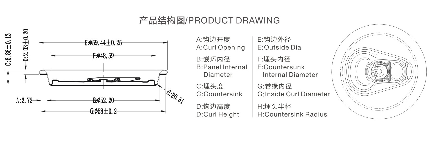 鉤邊外徑(mm) 59.44±0.25